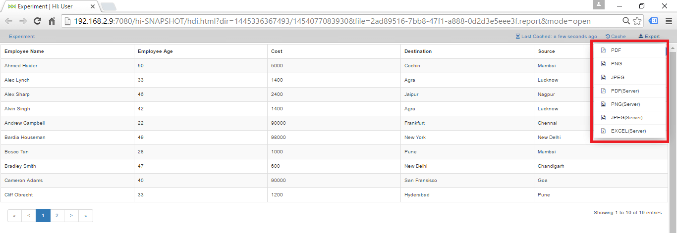 b. Exporting: Users can export reports/dashboards into various file formats like PDF, JPEG, PNG, Excel etc. To know more about exporting, click here